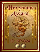 Liebe Karin, lieber Alexander, für eure Arbeit möchte ich euch heute gern meinen Hexymaus Award mit 2 Perlen (ID: KP-S24) überreichen und hoffe, er ist Ansporn für weitere gute Taten ;-)