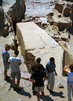 Es ist wieder sehr heiß! Im ganzen Steinbruch ist nur ein einziger Baum zu sehen. So quälen wir uns die vielen Stufen hinauf, überqueren so manche Steinhalde, bis wir beim unvollendeten Obelisken angelangen. Von hier oben sieht er noch imposanter aus. Wenn man bedenkt, dass dies vor zigtausend Jahren begonnen wurde und welche Werkzeuge damals zu Verfügung standen, wird die Leistung der ägyptischen Arbeiter noch außerordentlicher.