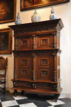 Ein Zimmer ist voll mit einem faszinierenden Sammelsurium an Gegenständen, die der Künstler zum Abmalen benutzte. Damit er auf Gemälden naturgetreu Darstellungen wiedergeben konnte, benutzte er die Dinge aus seiner Sammlung. Hier herrscht ein interessantes Durcheinander an Büsten, Muscheln, Waffen, präparierten Tieren und was man sich so alles vorstellen kann.