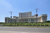 Einstmals befanden sich hier typisch rumänisch Häuschen mit Gärten rundherum, die jedoch nicht Ceausescus Geschmack als geeignete Umgebung für seinen Protzbau trafen und er deswegen kurzerhand schleifen ließ. Die Eigentümer und Bewohner wurden vertrieben und bekamen als Ablöse für ihre Immobilien Wohnungen in jenen riesenhaften Wohnanlagen mit klassizistischer Andeutung in Form von nackten Säulengängen im Dachgeschoss. Ob dies einen adäquaten Gegenwert darstellte ist zweifelhaft.