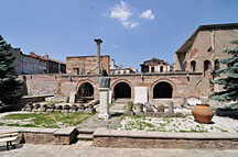 Doch nicht nur eine Gstettn gibt es vis-a-vis der geschlossenen Karawanserei, sondern noch zwei weiter Sehenswürdigkeiten. Da ist einerseits die Biserica Sf. Anton Bunavestire, die im 16. Jahrhundert von Fürst Mircea Ciobanul gestiftet und als Krönungskirche genutzt wurde und andererseits die Überreste des alten Fürstenhofes Curtea Veche.