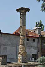 Vom Curtea Veche, dem alten Hof, sind nur mehr wenige Überreste zu sehen: ein paar Mauern, eine einzelne Säule und eine Büste von schauriger Berühmtheit, da sie nämlich Vlad Tepes, die historische Inspiration zu Bram Stokers Dracula zeigt.