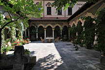 Von der einstmaligen Schlichtheit ist nichts mehr übrig, dafür gehört Stavropoleos unserer Meinung nach zu den romantischsten Orten der rumänische Hauptstadt. Der begrünte Innenhof mit Arkaden, Blumentöpfen und schattenspendenden Linden ist eine wahre Oase, vor allem bei den aktuellen Temperaturen von über 30 °.
