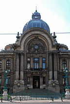 Zurück auf der Calea Victoriei betrachten wir den Palatul CEC etwas näher. Es handelt sich dabei um das Gebäude der Rumänischen Sparkasse, das mit großartiger Kuppel, einer schön verzierten Uhr am Portal sowie Figuren an der Fassade auch als Bahnhofsgebäude durchgehen könnte. 1897 wurde das vom französischen Architekten Paul Gotterau entworfene Gebäude feierlich eingeweiht, doch es dauerte dann noch weitere 3 Jahre bis zur tatsächlichen Fertigstellung.