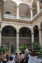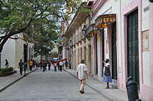 Durch die Calle Obispo, einer Fußgängerzone, schlendern wir durchs alte Havanna. Viele schöne Häuser sind hier zu sehen. Koloniale Paläste wechseln einander mit Hotels im Stil der Jahrhundertwende ab, dazwischen gibt es Museen oder öffentliche Gebäude. Teilweise sind die Prachtbauten bereits vorsichtig renoviert, teilweise arg verfallen, teilweise aber auch schlimm modernisiert und verschandelt. Es bleibt zu hoffen, dass letzteres sich trotz den Kubanern zu wünschenden wirtschaftlichem Aufschwung auch zukünftig in Grenzen halten wird.