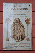Ecke Obispo und Mercaderes, fast schon an der Plaza de Armas, steht das Hotel Ambos Mundos. Hier hat Ernest Hemingway in den 1930er Jahren gewohnt und den größten Teil seines Romanes Wem die Stunde schlägt geschrieben. Das Hotel hat ein unvergleichliches Ambiente, geprägt durch einerseits den sachlichen Stil der damaligen Zeit, andererseits durch überraschende Kunstgegenstände und dekorative Elemente wie z.B. der Brunnen in der Lobby, in welchem Schildkröten gehalten werden.
