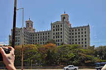 Das Hotel National steht nun noch auf unserer Liste der zu besuchenden Sehenswürdigkeiten. Einst war es, wie der Name schon nahelegt, eine staatliche Einrichtung. Doch jetzt ist die noble Herberge in Privatbesitz. Die Lobby ist riesig und durch die hohe Decke angenehm kühl. Alles ist bunt verfliest - eines der wenigen Tribute an den Mudejar-Stil hier in Havanna.