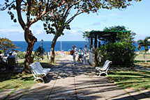 Das Swimmingpool liegt verweist im Schatten, doch im terrassenartig angelegten Park mit Blick auf das Meer ist einiges los. Hier sitzen Herren in weißem Leinen mit Panamahut und Damen in wehenden Röcken und nippen an ihren eisgekühlten Mojitos oder Daiquiries. Ein sehr gediegenes Flair und ein Ort, der zum Verweilen einlädt. Wir tun das allerdings nicht, denn unsere Rundfahrt neigt sich dem Ende zu.