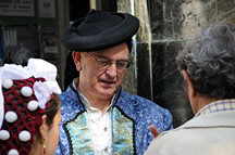 Oft sind auch Kräuter und Obst um sie drappiert. Dazu gibt es Damen und Herren in Tracht, die singend, schwatzend und lachend mitgehen. Es sieht fast aus wie ein Heiratsmarkt oder soetwas ähnliches. Wir verbringen einige Zeit mit Beobachten und Fotografieren.