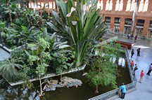 Unter der riesigen Wölbung der alten Bahnhofshalle, die zwischen 1888 und 1892 aus Eisen und Glas im Jugendstil erbaut wurde, hat man 1992 bei der Eröffnung des neuen, modernen Bahnhofstraktes einen tropischen Garten angelegt.
