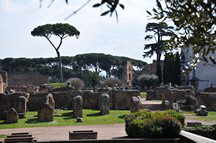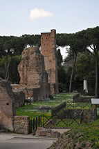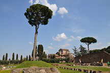 Oben auf der Kuppe des Palatin liegen die Farnesischen Gärten aus dem 16. Jahrhundert mit schönem Blick von der Terrasse hinunter auf das Forum. Nachdem sich zunächst das Geschlecht der Baronen Frangipani auf dem Palatin häuslich niedergelassen und mit dem Baumaterial der antiken Ruinen (war ja genügend da im Selbstbedienungsladen) eine Burg erbaut hatte (davon sieht man heute nichts mehr), ging der Großteil des vorderen Hügels an die Familie von Papst Pauls III. Farnese über.