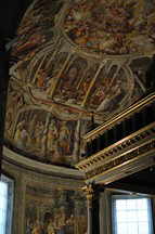 Bekannt sind die 3 Statuen von Rachel, Lea und allen voran Moses. Außerdem sind auch sehr schöne Deckenfresken hier zu bewundern. Betrachtet man die Figur des Moses genauer, so fallen die Hörner auf, die seine Stirn zieren und man fragt sich, ob es sich hier wirklich um den Überbringer der 10 Gebote handelt oder vielleicht doch eher um einen Faun, nach dem auch das gegenüberliegende Studentencafé benannt ist.