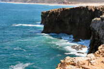 Unsere Fahrt führt uns am Praia da D. Ana, am Ponte da Piedade, an den Orten Luz und Burgau vorbei bis in die Nähe von Salema. Dort kehren wir wieder um und reiten auf den Wellenbergen zurück in eine kleine Bucht in der Nähe von Lagos. Nach dem Ankern wird für unser leibliches Wohl gesorgt.