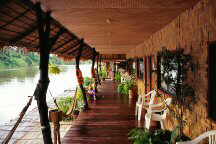 Zuerst nehmen wir abwechselnd die Hängematte in Beschlag (jedes Zimmer hat eine solche). Für unsere müden Glieder ist es eine Wohltat sich nun auszuruhen. Vom Fluss hören wir den leise auf das Wasser tröpfelnden Regen. Abgerundet wird die akustische Kulisse durch verschiedene Geräusche aus dem nahmen Regenwald. Einige Zeit später senkt sich langsam die Sonne und taucht die Wolken in ein zartes Orange-Rosa. Die Geräusche aus dem Regenwald werden immer leiser bis gänzliche Stille eintritt.