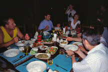 Das Abendessen nehmen wir gemeinsam ein. Da wir derzeit die einzigen Gäste im "Hotel" sind, wird extra nur für uns aufgekocht. Die Küche stellt eine Variation aus den lokalen Spezialitäten zusammen. Jeder darf sich nehmen, worauf sie/er Gusto hat. Großartig!